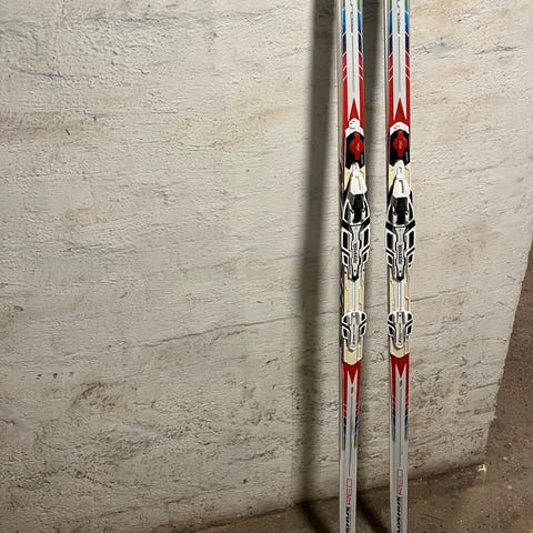 Kjøpt nye og brukt lite en sesong til de ble for små. Pent brukte felleski..Passer til noen mellom 50-60 kilo cirka. Rottefella binding.