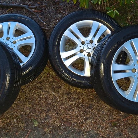 Selger 205/55 r16 felger til Audi og Volkswagen Skoda.To dekk med 4 mm mønster og to dekk med 2,5 mm mønster