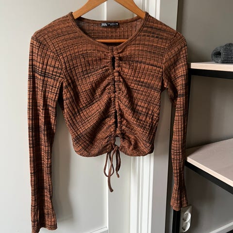 Selger denne toppen fra Zara , den er veldig fast i stoffet , brukt en gang står m men kan passe s og