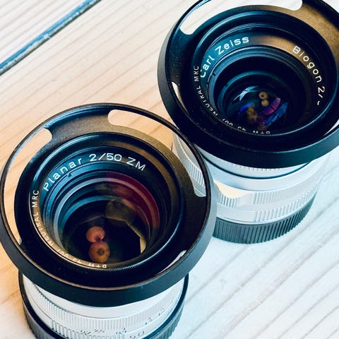 Zeiss C Sonnar 1,5/50 ZM selges med original eske til både objektiv og solblender.