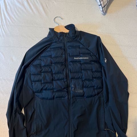 Pent brukt herre Peak Performance argon hybrid jakke i marineblå selges.