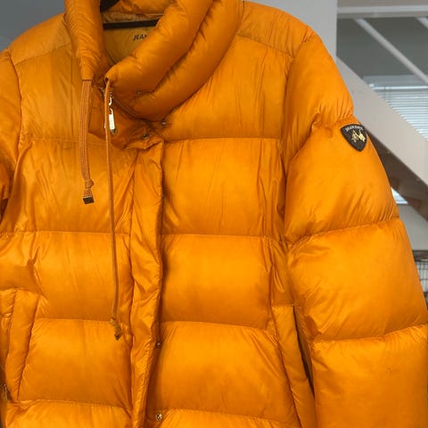 Jean Paul dunjakke for dame i størrelse S. Jakken er rød og fylt med dun. Den har hette med fuskepelskant, glidelåslukking foran og flere utvendige lommer. Snøring i livet for justering av passform. Egnet som ytterjakke i kjøligere vær. Kan fraktes gratis mellom Oslo og Lillehammer