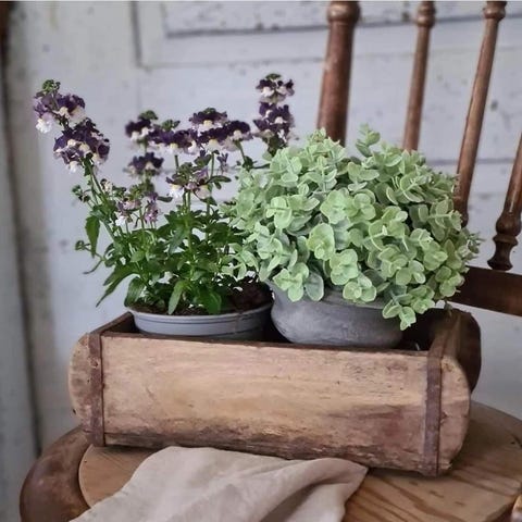 Egner seg godt til oppbevaring eller dekor, for eksempel til mindre gjenstander, kjøkkenutstyr, kontorartikler, blomster eller pynt. Overflaten har et rustikt preg med synlige bruksspor i treverket.