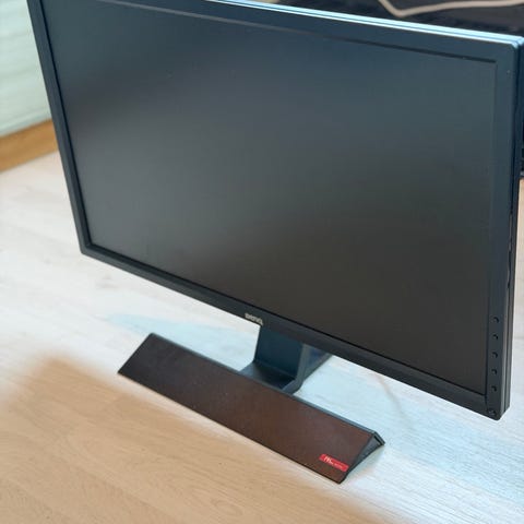 BenQ RL2755HM skjerm med 27 tommer skjermstørrelse i svart utførelse. Skjermen har rektangulær fot og tilkoblinger plassert på baksiden. Egner seg til bruk med stasjonær PC eller som ekstern skjerm til bærbar PC og andre kompatible enheter som støtter tilkobling til monitor.