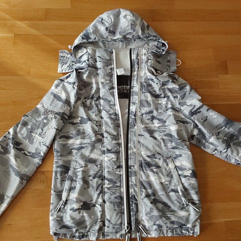 Sjelden, vintage jakke fra 2010/2011, kjøpt på Eger. Den er spraymalt med mikrobiter av glass, noe som gjør at den virkelig skinner når man lyser på den. Noen av fotoene er tatt med blitz. Fleecefor. Som det vises på fotoene, er malingen slitt vekk på steder med mye slitasje (særlig under armene og i nakkeregionen).