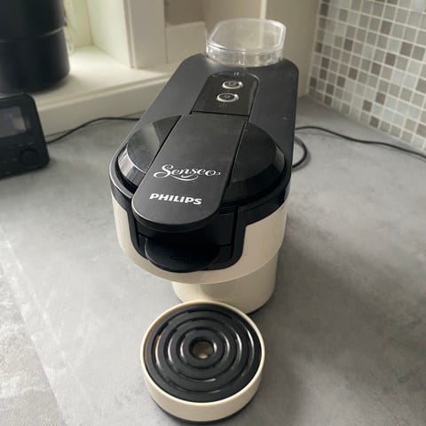 Philips Senseo kaffemaskin i farge lys beige.