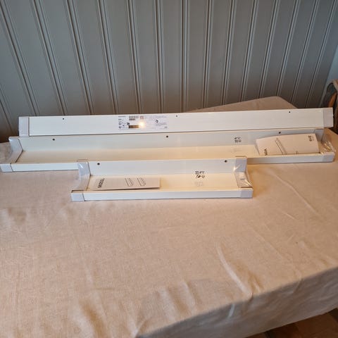 Selger to stykk uåpnede Mosslanda vegghyller fra IKEA. Selges samlet for kr 100 totalt. Nypris er kr 79 pr stykk.