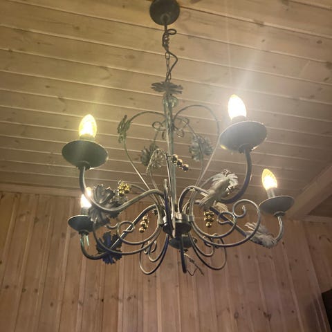 Lysekrone selges fordi den ikke passer inn i ny bolig. Pen og hel. Ukompliserte pærer.