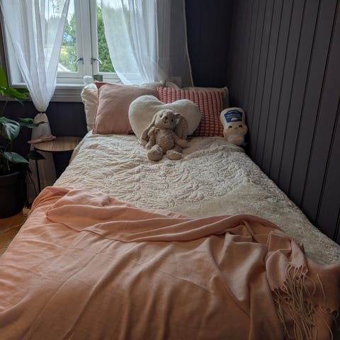 Sengen består av en 90cm seng og en uttrekkbar del under som kan brukes som ekstra enkeltseng. Under den uttrekkbare delen er det integrerte skuffer som gir ekstra oppbevaringsplass, for eksempel til sengetøy eller leker.