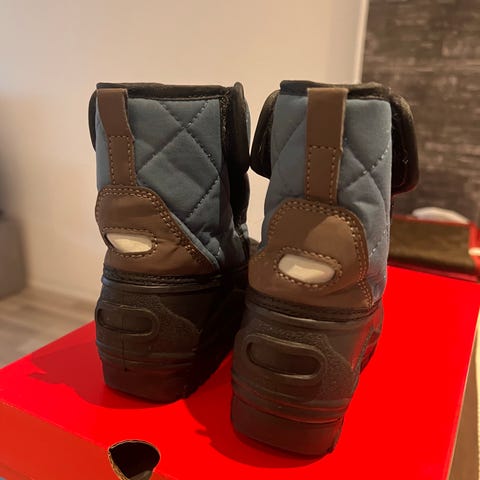 Reflex vinterstøvler for barn, unisex, i størrelse 25. Støvlene er svarte med grå innvendig kant og snøring/stramming øverst for bedre passform rundt ankelen. Grovmønstret yttersåle i gummi gir godt grep på glatt underlag. Egnet som varme og robuste vinterstøvler til hverdagsbruk i barnehage og utelek i kaldt og vått vær.