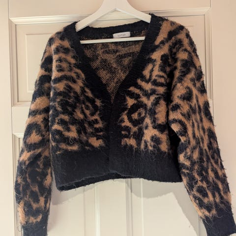 By Malene Birger Bubbio cardigan for dame i størrelse L. Cardiganen er strikket i kid mohair og har et flerfarget mønster med kontrastkanter. Modellen har dyp V-hals, knappelukking foran, splitt i sidene og to frontlommer. Passer godt som et lag over topp eller kjole til hverdagsbruk eller mer pyntede anledninger. Kjøpt for å ha oversized.