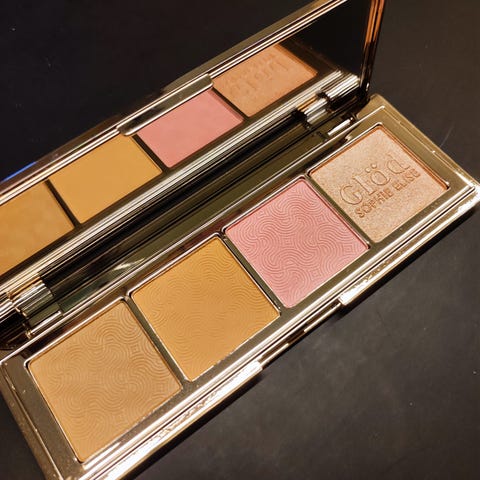 Estée Lauder Deluxe Eyeshadow Compact øyenskyggepalett med 18 Pure Color-øyenskygger i ulike nyanser. Paletten inneholder både matte og sateng-finish i alt fra lyse til mørke farger, inkludert nøytrale, rosa, lilla, beige, brune og grønne toner. Leveres i et gullfarget etui med speil i lokket og to applikatorer.