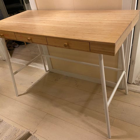 Pent brukt skrivebord og et pent møbel. Fungerer fint som avlastningsbord/konsollbord.