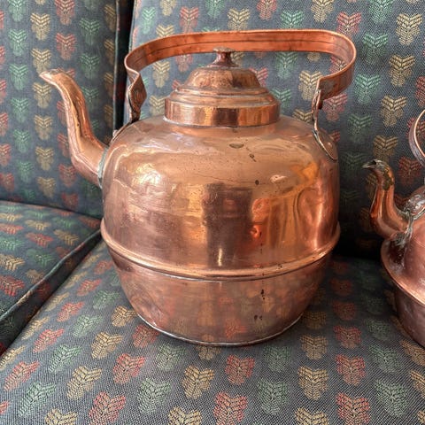 Kobberkjele ( til fisk) med lokk. Rektangulær form med håndtak på sidene og med håndtak på toppen av lokket. Passer til oppbevaring eller som dekorasjonsgjenstand. Overflaten har patina og bruksspor som gir et eldre preg.