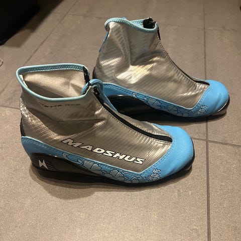 Madshus skisko for langrenn i svart og grå farge. Skoene har glidelås i front og overtrekk som dekker lissesystemet.