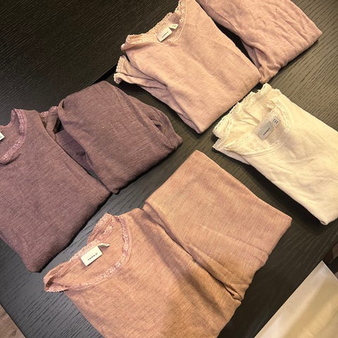 To ubrukte ullsett med trøye og bukse selges samlet eller hver for seg.