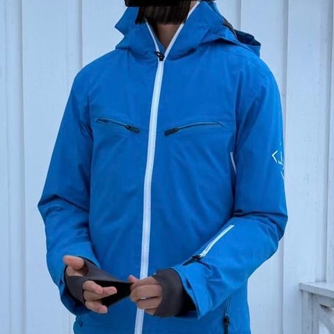 Salomon jakke i grå farge. Jakken har avtakbar hette, høy krage og flere glidelåslommer, blant annet brystlomme og sidelommer, åpenbart på sider. Justering ved håndledd og nederkant. Egnet som ytterjakke til hverdagsbruk og utendørsaktiviteter. Bare brukt som skijakke, ingen skader, huler, riper, ingen lukt, enkelt å vaske
