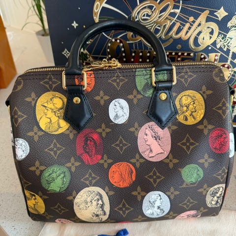 Pent og lite brukt Speedy Bandouliere Damier Ebene fra sept. 2022 selges. Mål: 25x19x15 cm (lengde, høyde, bredde). Alt følger med (kvittering fra LV i Oslo, pose, dustbag, hengelås og strap). Nypris hos LV i dag er kr 19200. En rød Mono insert kan kjøpes for kr 200 . Prisen er satt. Vesken befinner seg på Skøyen.