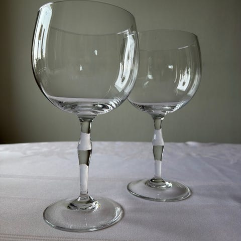 8 store og svært romslige ballong vinglass på kraftig stett. De tar 3 dl væske, er ubrukte og ligger godt i hånden. Måler 16cm på høyden. Kan sendes. Kr.600