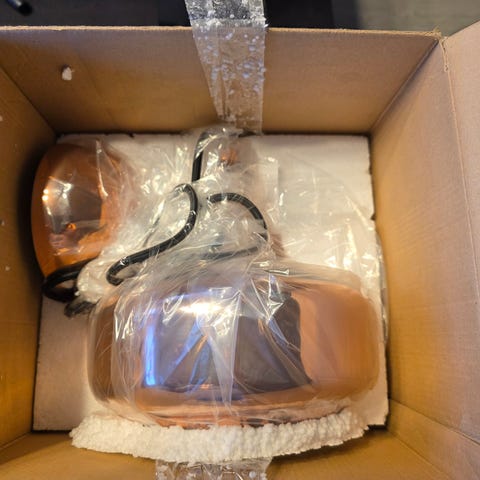 To ubrukte taklamper selges. Diameter 15cm, høyde 30cm.