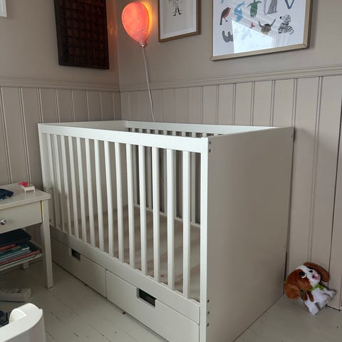 Selger en pent brukt Troll sprinkelseng kjøpt på Barnas Hus i 2023. Sengen kan justeres i tre forskjellige høyder, og passer standard mål for madrass til sprinkelseng (60x120cm). Sengen har kun et lite bruksmerke på innsiden av sengen (se siste bilde), ellers er den svært pent brukt.