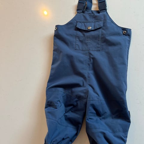H&M varm selebukse for barn i størrelse 92. Buksen er unisex og i blå polyester. Den har justerbare seler, strikk i livet og strikk nederst i beina for bedre passform. Det er fotstrikk under føttene for å holde buksen på plass. Innsiden har mykt fleecefôr som gir ekstra komfort. Egnet som ytterbukse til bruk i kaldt vær.