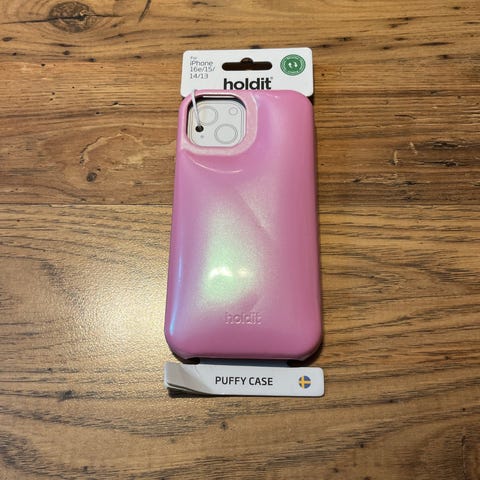 Holdit telefondeksel til iPhone 16. Pakken inneholder to deksler: ett grønt silikondeksel og ett rød/hvitt deksel med bølget kant. Dekslene er laget for smarttelefon og gir beskyttelse rundt kanter og bakside. Åpninger for kamera og knapper er tilpasset telefonens utforming. Passer for brukere som ønsker enkle, fargede deksler til telefonen sin. 100kr pr deksel