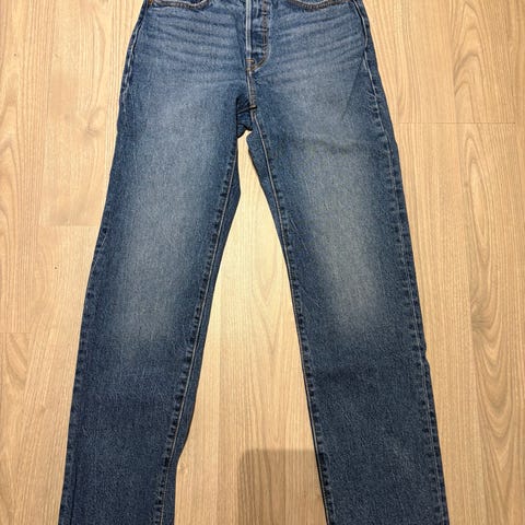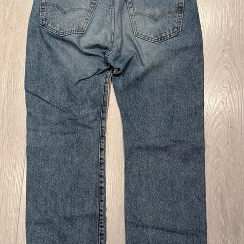 Levi's 501 jeans for dame i størrelse S med livvidde W26. Buksen er i blå denim laget av bomull. Klassisk 5-lommers modell med knappelukking. Lengde på buksen er L32