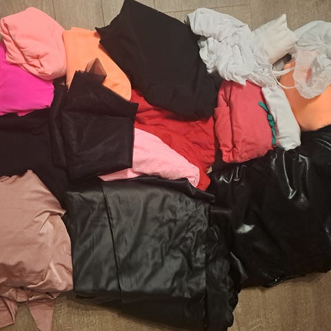 Stoffrester og metervare i ulike farger og mønstre. Gis bort.