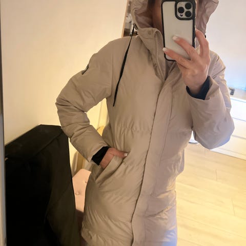 Johaug dunjakke for dame i størrelse M. Jakken er rosa og inneholder dun. Den har hette, belte i livet og gjennomgående vattering for jevn isolasjon. Passer som ytterjakke i kjøligere vær. Ytterstoff og fôr er i lett, vattert materiale med glidelås og klaff i front, samt lommer i sidene.