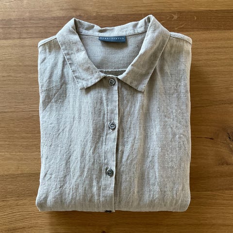 Laget av lin av svært høy kvalitet – et pustende, slitesterkt og naturlig materiale som føles lett og behagelig mot huden. Stoffet har den karakteristiske, levende strukturen som kjennetegner Nygårdsanna, med et rustikt, nordisk uttrykk og tidløs eleganse. Linet blir bare mykere og vakrere med bruk, og holder formen svært godt over tid. Perfekt til varme dager når du ønsker noe naturlig, luftig og komfortabelt.