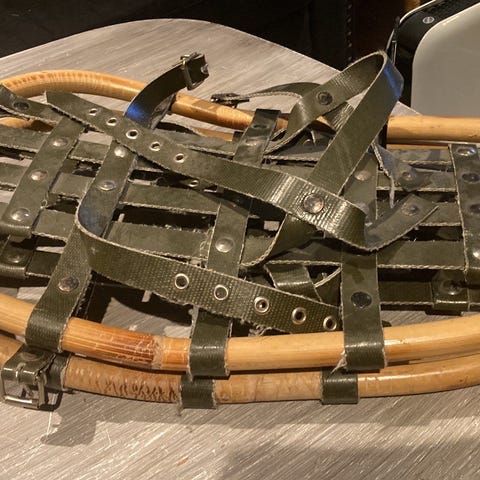 MSR Shift truger i blå farge med turkise remmer. Trugene har plastdekk og metalltenner under for bedre feste på snø og is. Justerbare remmer gjør at de kan tilpasses ulike skostørrelser. Egnet for bruk på tur i snøterreng.