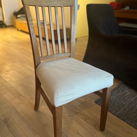 Stolene har noe bruksmerker, men er fortsatt veldig fine. Selges for 150,- per stykk eller 1000 for alle åtte.