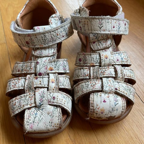 Med blomster motiv. pent brukt av ei jente. Kvalitet og solid sandaler. Meget fornøyd her😊