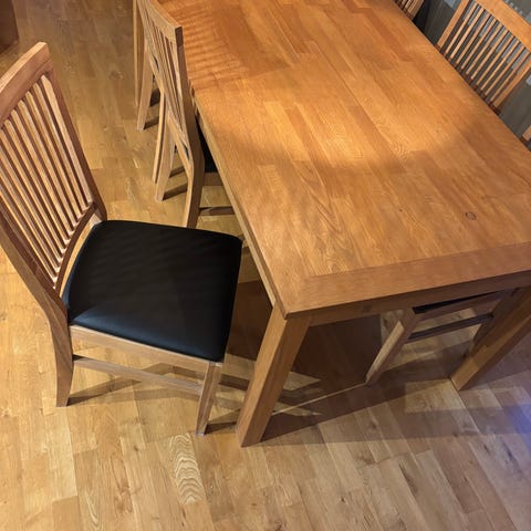 Spisebord med 4 stoler i heltre eik