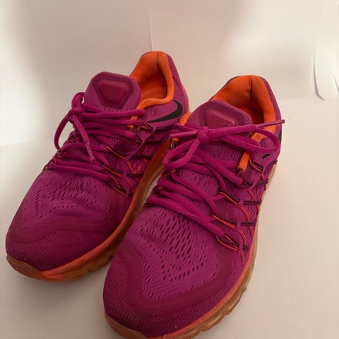 Nike Air Max joggesko i størrelse 40. Modellen har synlig Air-demping i hælen og kraftig yttersåle med godt mønster. Skoene er i en lys/hvit farge med snøring og polstret hælparti for økt komfort. Egnet som fritidssko og til hverdagsbruk.