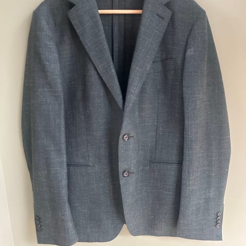 These Glory Days dressjakke for herre i størrelse 52. Jakken er grønn og laget i lin, med klassisk krage og to knapper i front. Den har innerlommer og er delvis foret på innsiden. Passer til bruk som del av dress eller som enkel blazer til hverdags- og penantrekk.