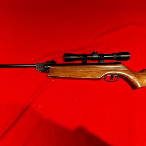 Har hatt dette luftgeværet på hytta, blitt brukt i perioder men har ligget på hylla mer enn det har blitt brukt.