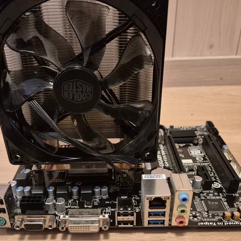 MSI hovedkort med DDR4 16gb minne og Intel i7 6700k prosessor med kjøler. WiFi kort og Bluetooth følger også med.