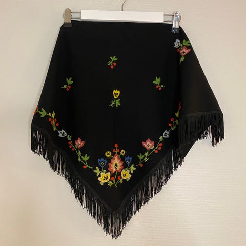 * Farge: Sort med broderier i rosa, gult, blått og grønt