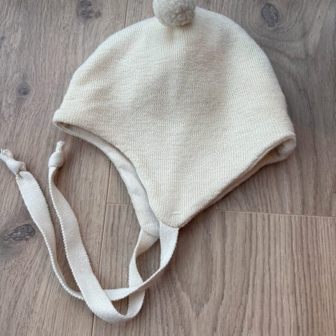 Copenhagen Colors lue til baby i størrelse 40. Luen er hvit og laget av 100 % merinoull. Modellen har øreklaffer og knytebånd under haken for å sitte godt på hodet. Passer til unisex baby. Materialet er mykt og tynt, egnet for bruk store deler av året. Vaskes etter anvisning på plagget, med ullprogram og egnet ullvaskemiddel.