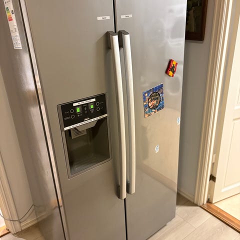 Kjøleskap med fryser, vanndispenser og isbitmaskin selges.