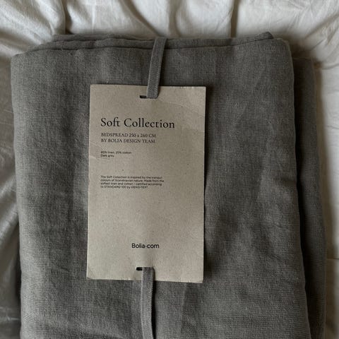 Bolia tekstiler i naturfarget lin. Settet består av tekstiler i mykt linstoff, egnet til bruk i hjemmet, for eksempel som duker, servietter eller andre interiørtekstiler. Fargen er nøytral og lys, og materialet fremstår som vasket lin med lett struktur.