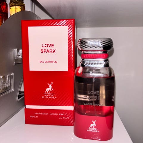 Goya parfymeflaske med sprayfunksjon. Gjennomsiktig glassflaske med metallfarget pumpe og lys brun/beige duftvæske. Passer til oppbevaring og påføring av parfyme.