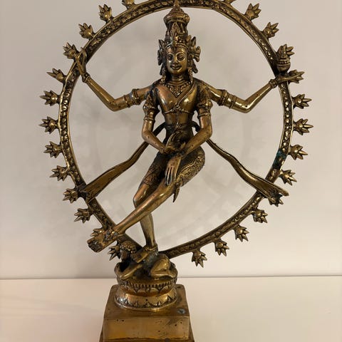 Skulptur i messing/bronse ? av dromedar ved palmetre.