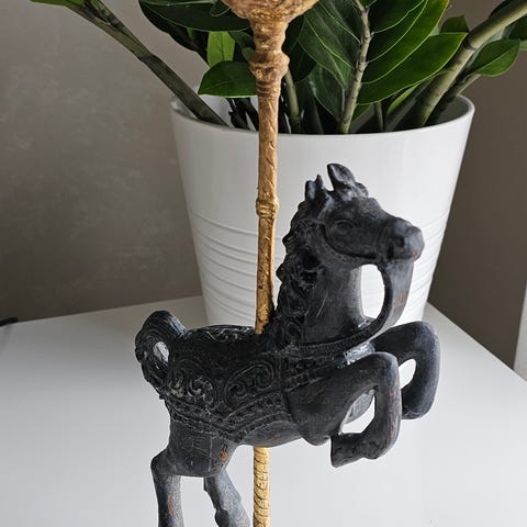 Fin og sjarmerende skulptur av dromedar ved et palmetre.
