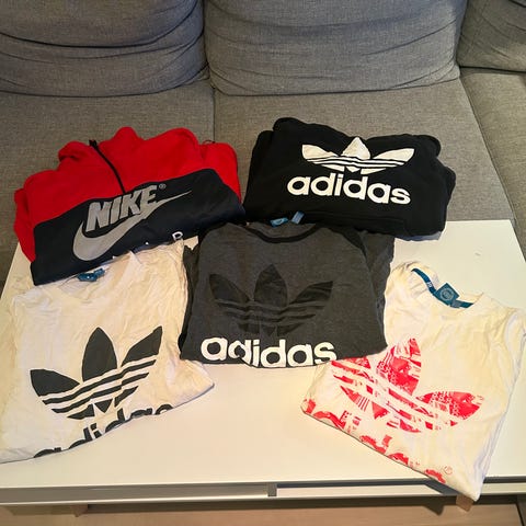 1 tracksuit, 2 genser, 2 sweatjakke, 1 olabukse, 2 t shirts