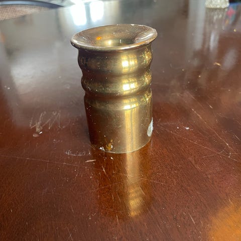 Lysestake i gull, vet ikke om det er messing, men den er i all fall i gullfarge. Mye mulig det er messing