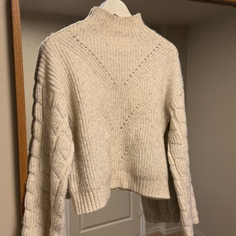 & Other Stories høyhalset genser for dame i størrelse XS. Genseren er strikket i ull og har en beige melert farge. Passer som varm og komfortabel overdel til hverdagsbruk. Passer til str 34-36. Sendes på kjøpers regning.