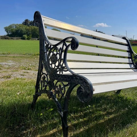 Komplett tøpejern sett med benk, bord og 2stoler som trenger litt kjærlighet.